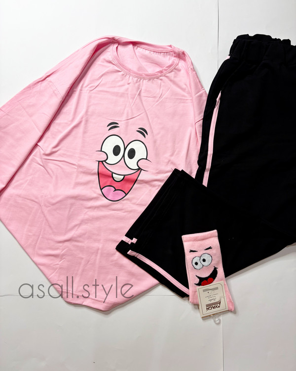 ست شامل تیشرت شلوار واید لگ و جوراب ساقدار